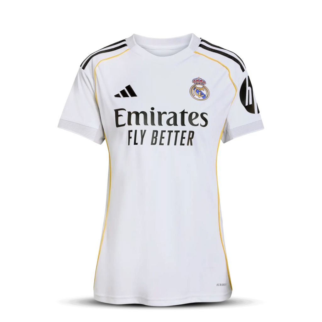 Estilo clásico modernizado: La camiseta conserva el blanco tradicional con detalles dorados que celebran los innumerables títulos logrados.