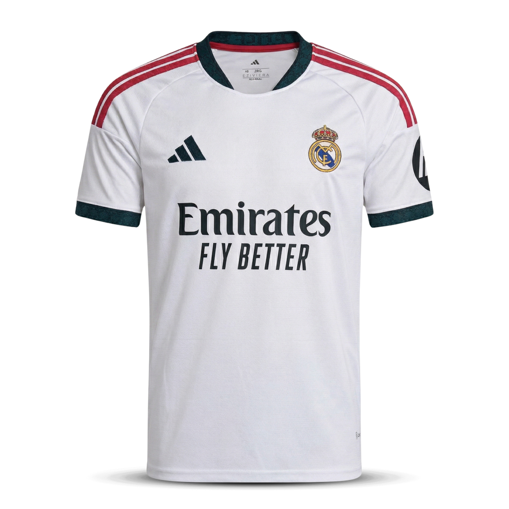 • Escudo del Real Madrid: Bordado de alta calidad, destacando el emblema que late en cada corazón madridista.